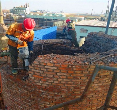 一、人工拆除煙囪法是指依靠手工加上一些簡單工具,如鋼釬、錘子、風鎬、手動導鏈、鋼絲繩等,對建(構)筑物實施解體和破碎的方法。人工拆除煙囪方法的特點是: